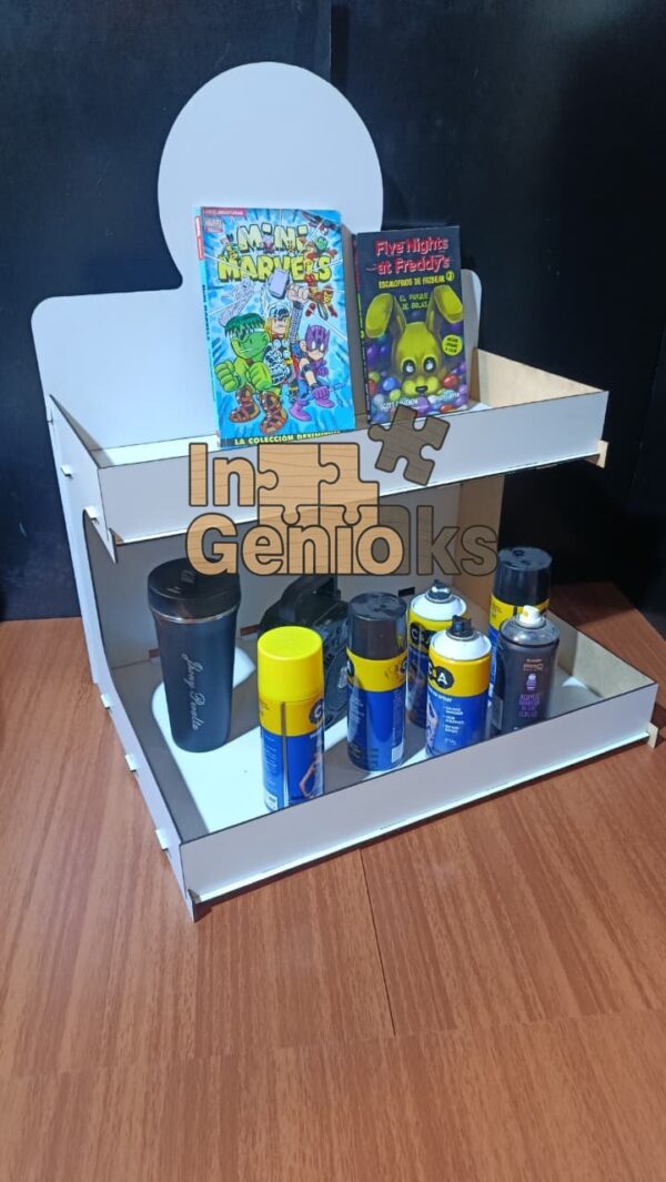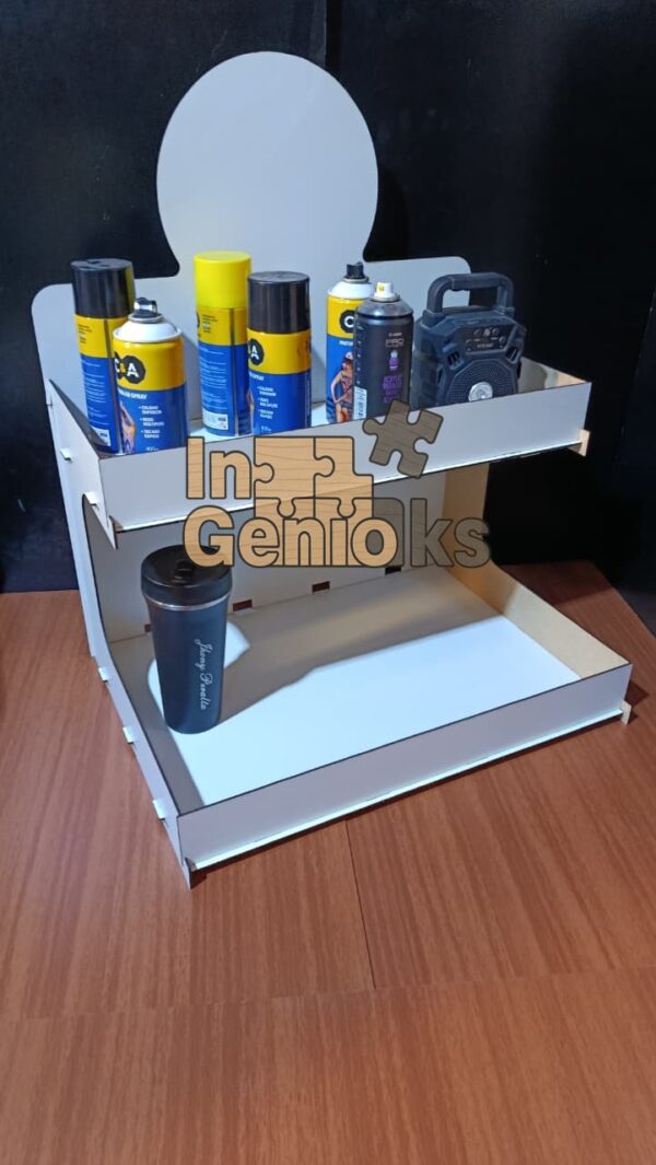 El Exhibidor de 2 Niveles es la pieza perfecta para transformar cualquier espacio en un punto de atención irresistible. Su diseño escalonado capta la mirada de tus clientes desde el primer instante ✨, transmitiendo orden, calidad y profesionalismo.